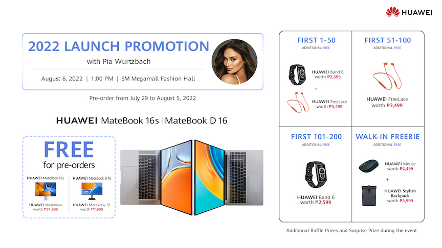 - Pre-order the HUAWEI MateBook D16 starting at PHP 55,999 with a free MateView SE worth PHP 7,999: HUAWEI Online Store, Lazada, Shopee