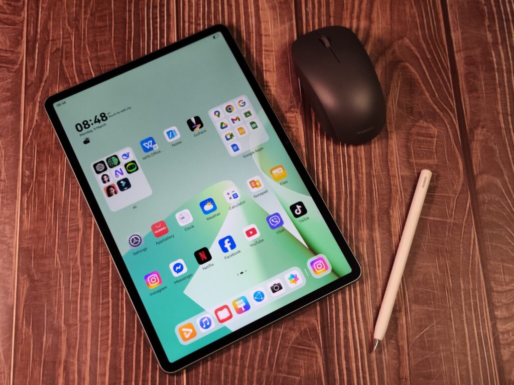 The tablet runs HarmonyOS 4.3, Huawei’s latest operating system for tablets, which emphasizes multitasking features like split-screen mode and floating windows.