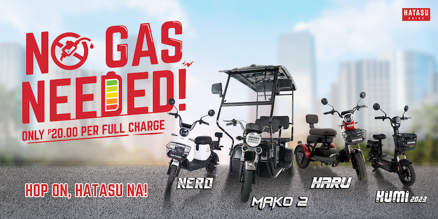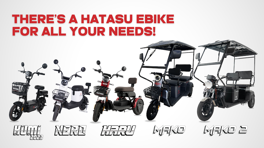 HATASU ebike is a mobility solution brand that aims to provide safe, value-for-money, and sustainable products that meet the daily riding needs of Filipinos. With its current line-up of two-wheeler and three-wheeler products, HATASU ebike aims to be the forerunner towards the move to a sustainable future and transform the riding lifestyle of every Filipino.