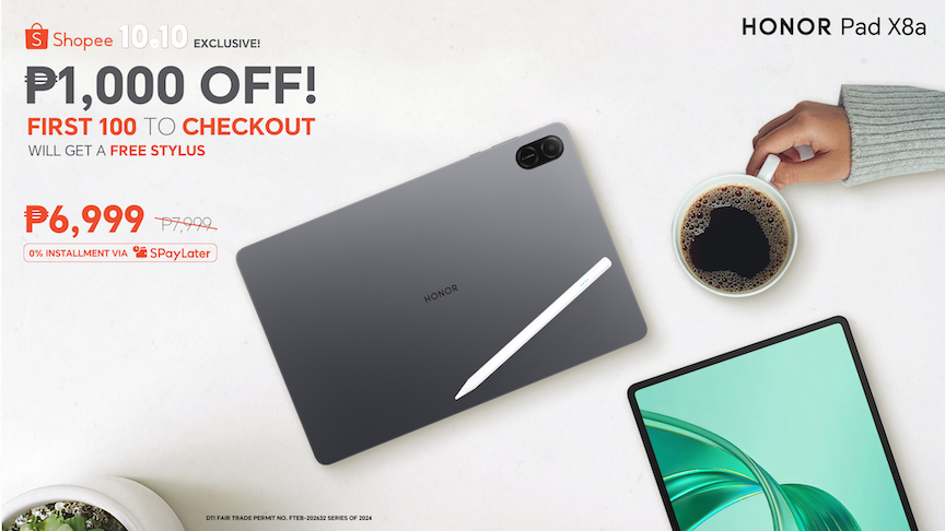 Global technology brand HONOR today introduced the hottest exclusive deal of its newest HONOR Pad X8a during the Shopee 10.10 Sale! Starting October 10 midnight, the first 100 buyers of HONOR Pad X8a will get a FREE Stylus Pen.
