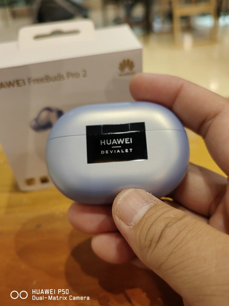 The charging case has a mirror-like Huawei/Devialet logo on the back which makes it easily identifiable from other cases.
