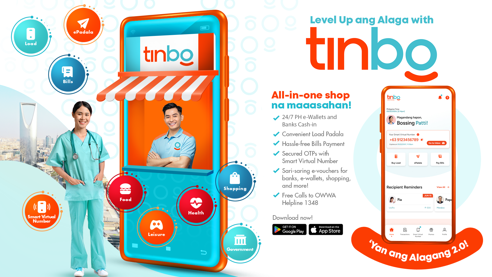 Available on the Google Play Store or Apple App Store, overseas Filipinos can simply download the TinBo app and register to seamlessly enjoy the offers and services available on TinBo with just a few taps on their smartphones. Watch how the TinBo app brings Alagang 2.0 to overseas Filipinos here.