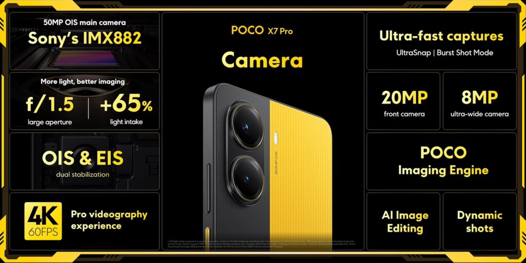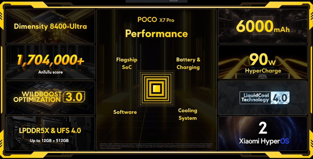 At the core of the POCO X7 Pro is the flagship Dimensity 8400-Ultra processor, making its global debut as the most powerful chipset in the X Series. Built on TSMC’s advanced 4nm processor and featuring the leading All-Big-Core design, the Dimensity 8400-Ultra achieves cutting-edge power efficiencies gain – 54%¹ from the CPU and 70%¹ from the GPU – while boasting a 50%² boost in AI performance compared to its predecessor. Together, these enhancements make the POCO X7 Pro compact and power-efficient in its category.