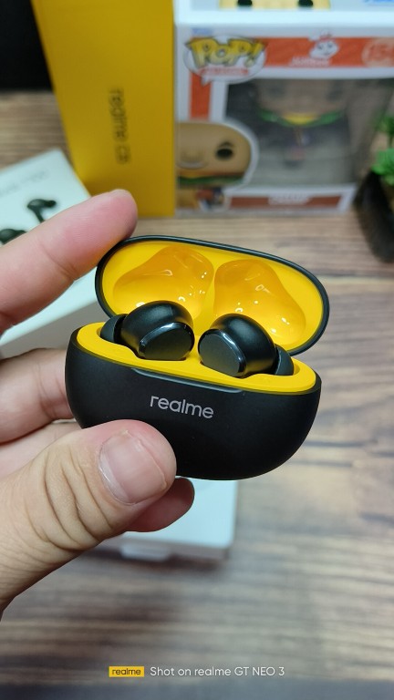 The realme Buds T100 is available in two colors, Punk Black and Pop White. The case looks you’re your typical pebble shaped case, but once you open the lid you’ll notice the Two-Tone Hit Color Design. The black inner case is yellow, while the white one has a gray interior. Both look good, but I actually prefer the Black/Yellow pairing. The Black case also isn’t glossy and not as much of a fingerprint magnet, unlike the white one which looks shiny.