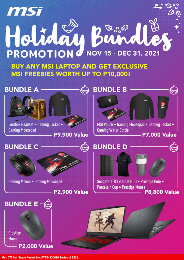 For more information about the MSI Holiday Bundles Promotion 2021, you may visit: https://ph.msi.com/Promotion/holiday_bundles_promotion_2021Q4/nb