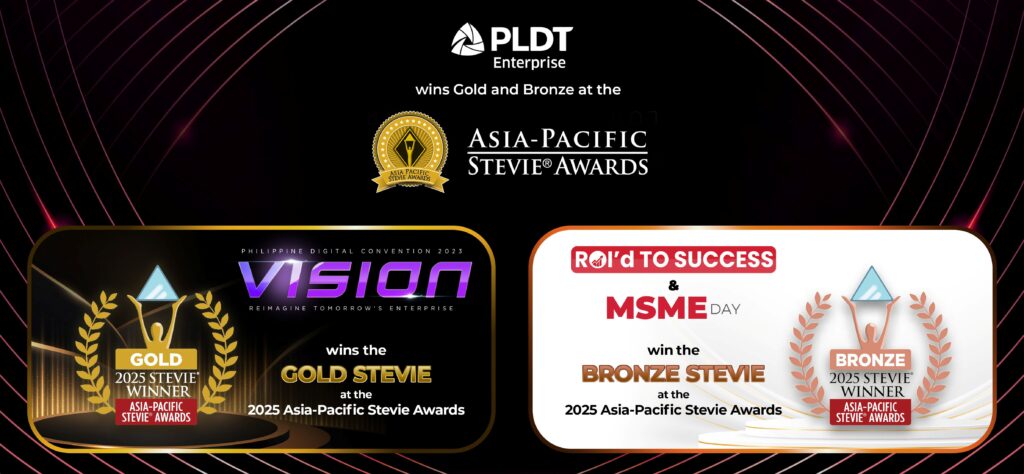 These wins show that the impact we make is real, measurable, and meaningful.” Back-to-Back Gold: PH Digicon 2023 VISION: Reimagine Tomorrow’s EnterpriseThe flagship innovation conference PH Digicon 2023 VISION: Reimagine Tomorrow’s Enterprise took home the Gold Stevie Award for Innovation in Digital Transformation, marking the second consecutive year the event has earned top honors. Gathering thousands of industry leaders, global tech giants, MSMEs, and public sector partners, PH Digicon has become the premier stage for showcasing digital trends, business transformation, and real-world tech solutions. During PH Digicon 2023, PLDT Enterprise deepened its relevance to Filipino businesses by bringing to life immersive sessions focused on AI, cybersecurity, connectivity, and digital resiliency. By continuing to evolve and grow in scale, the event reinforces PLDT Enterprise’s role as an enabler of innovation across Luzon, Visayas, and Mindanao.