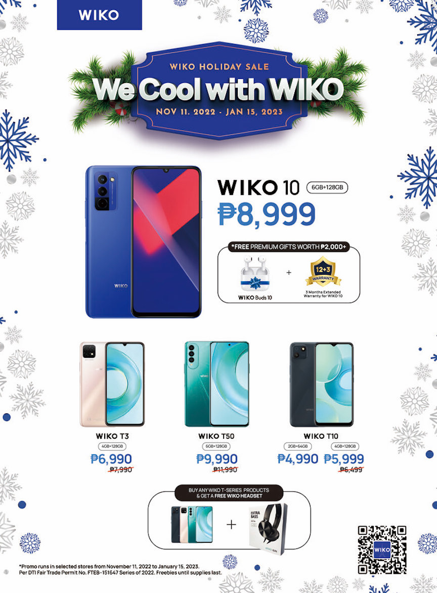 Treat yourself and your loved ones to stylish phones during WIKO’s merriest sale of the year. Visit the nearest authorized WIKO stores, and Lazada and Shopee from November 23 to January 15, 2023 to avail of these discounts.
